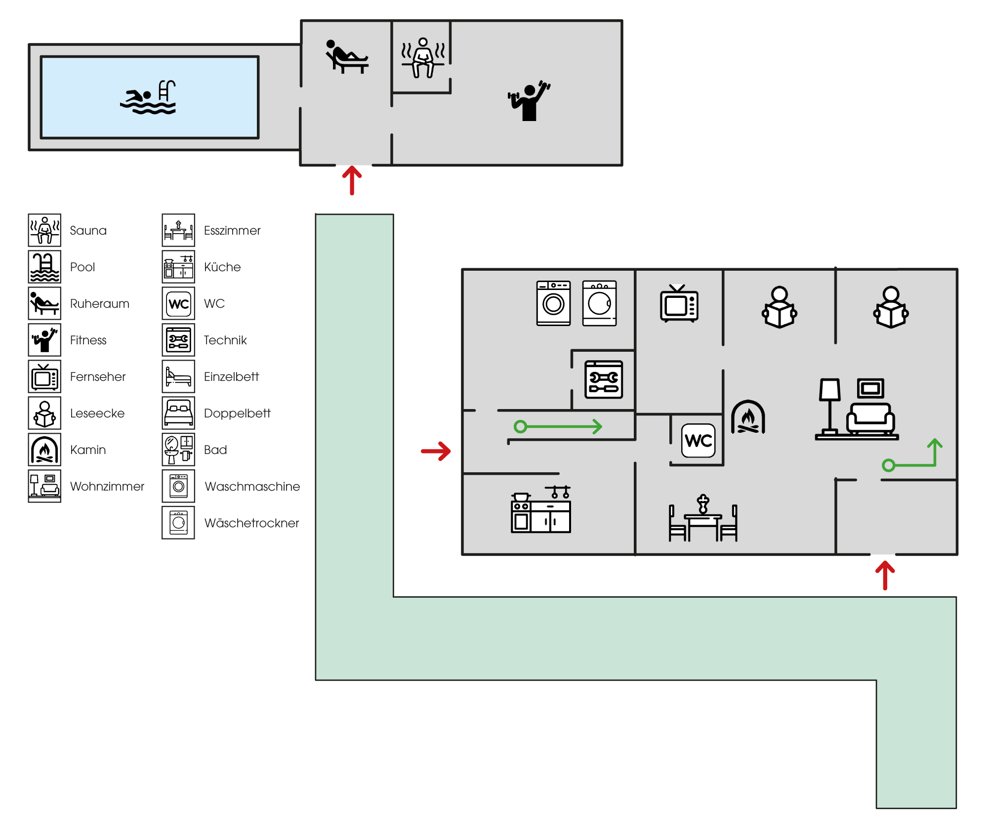 Wellnessbereich und Untergeschoss